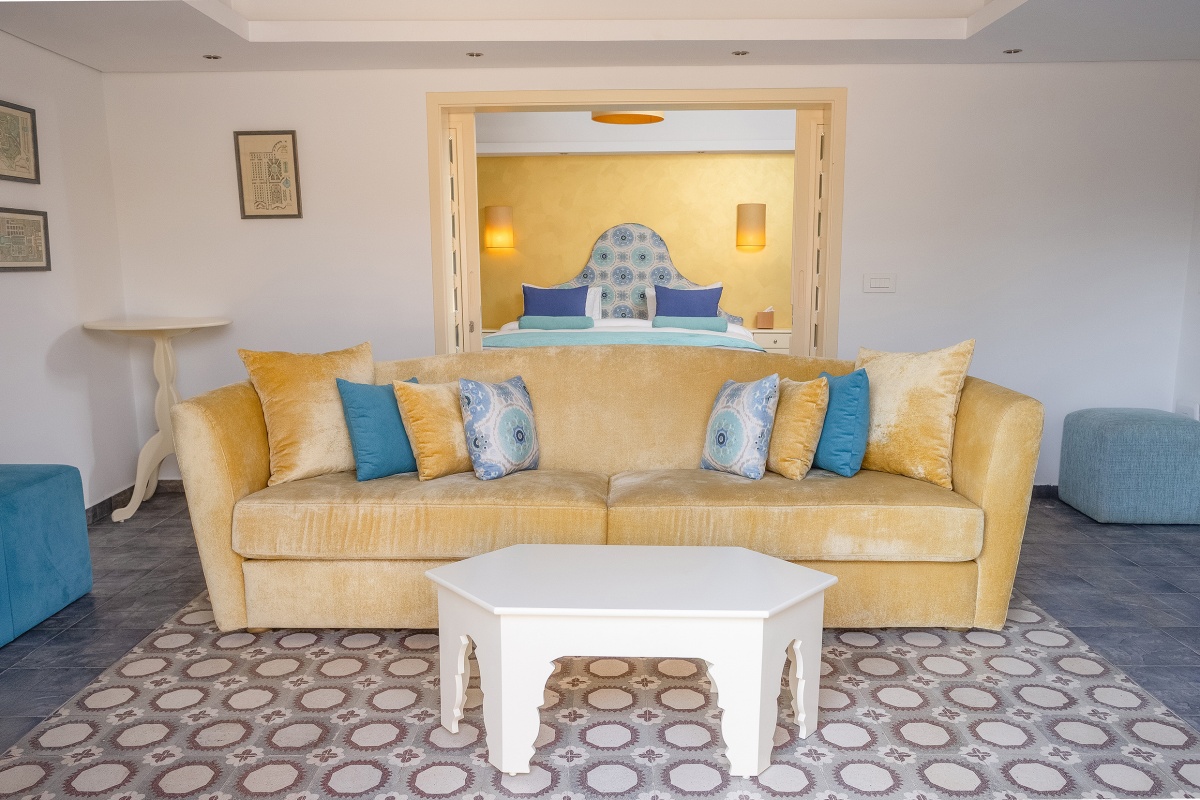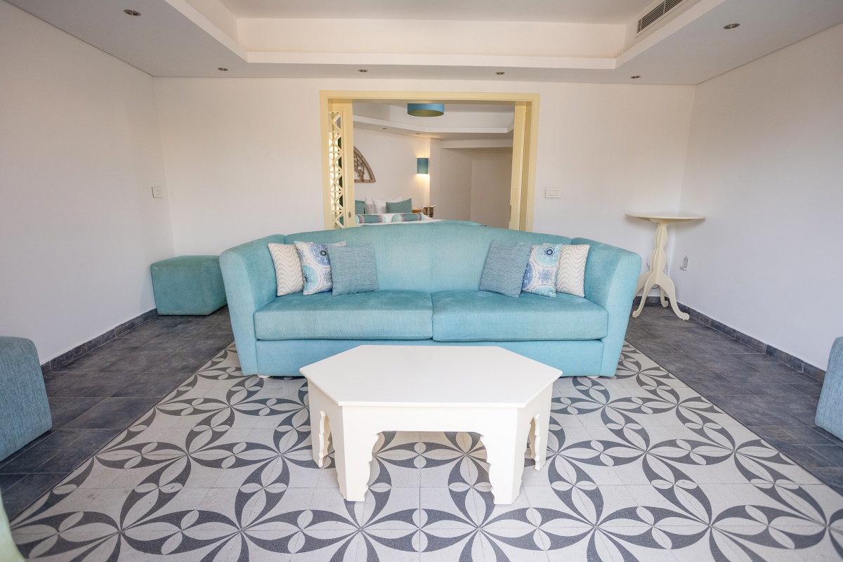 Located just steps away from the VIP pool, the Blue Suites offer a relaxing and stylish stay. Each suite features a king-size bed, a spacious living room, and a private terrace with pool view, a well-appointed bathroom.